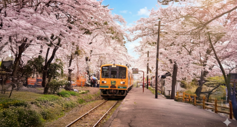 津軽鉄道と弘前城のさくら